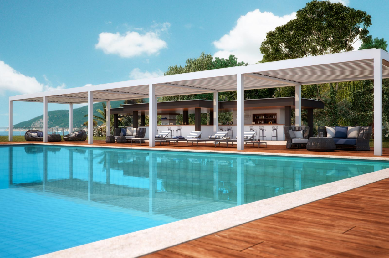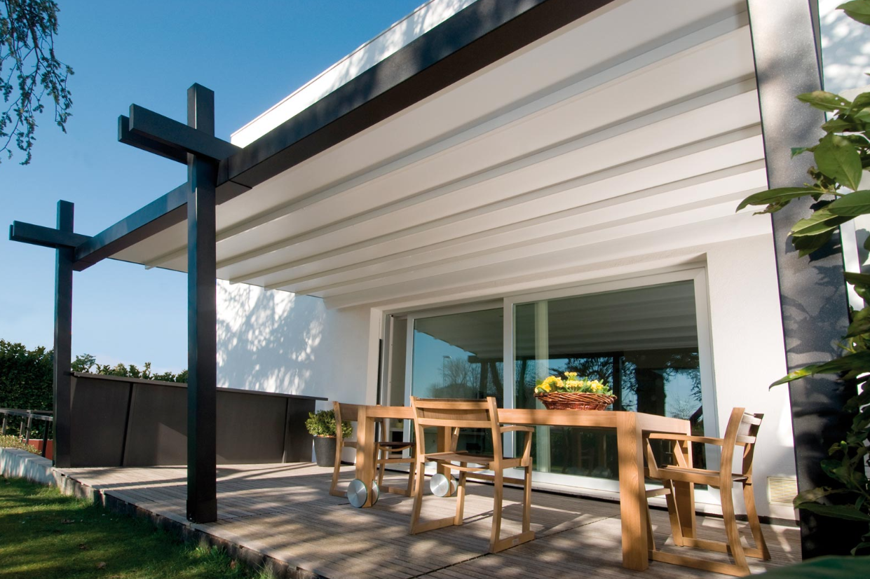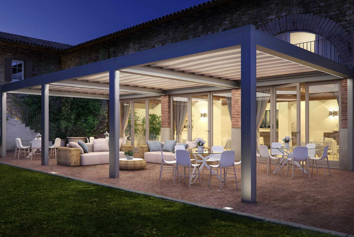 Integrabili in qualsiasi ambiente architettonico le pergole in alluminio sono caratterizzate dalla loro resistenza e funzionalità.