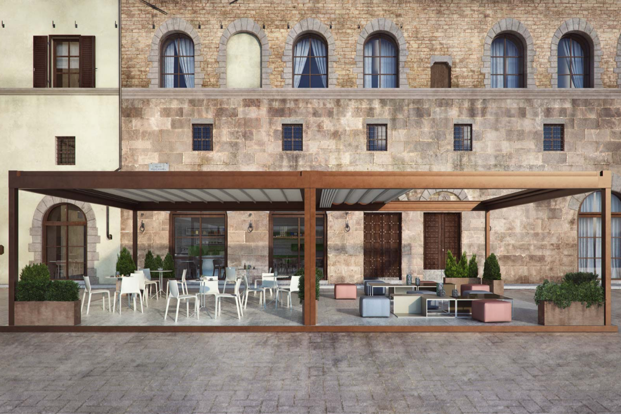 Versatili ed eleganti le coperture per esterni vantano di una eccellente resistenza e sono installabili in qualsiasi tipo di contesto architettonico.