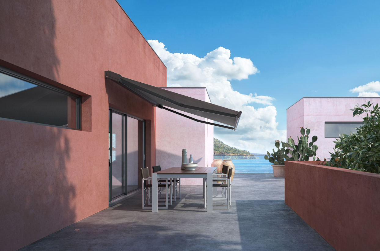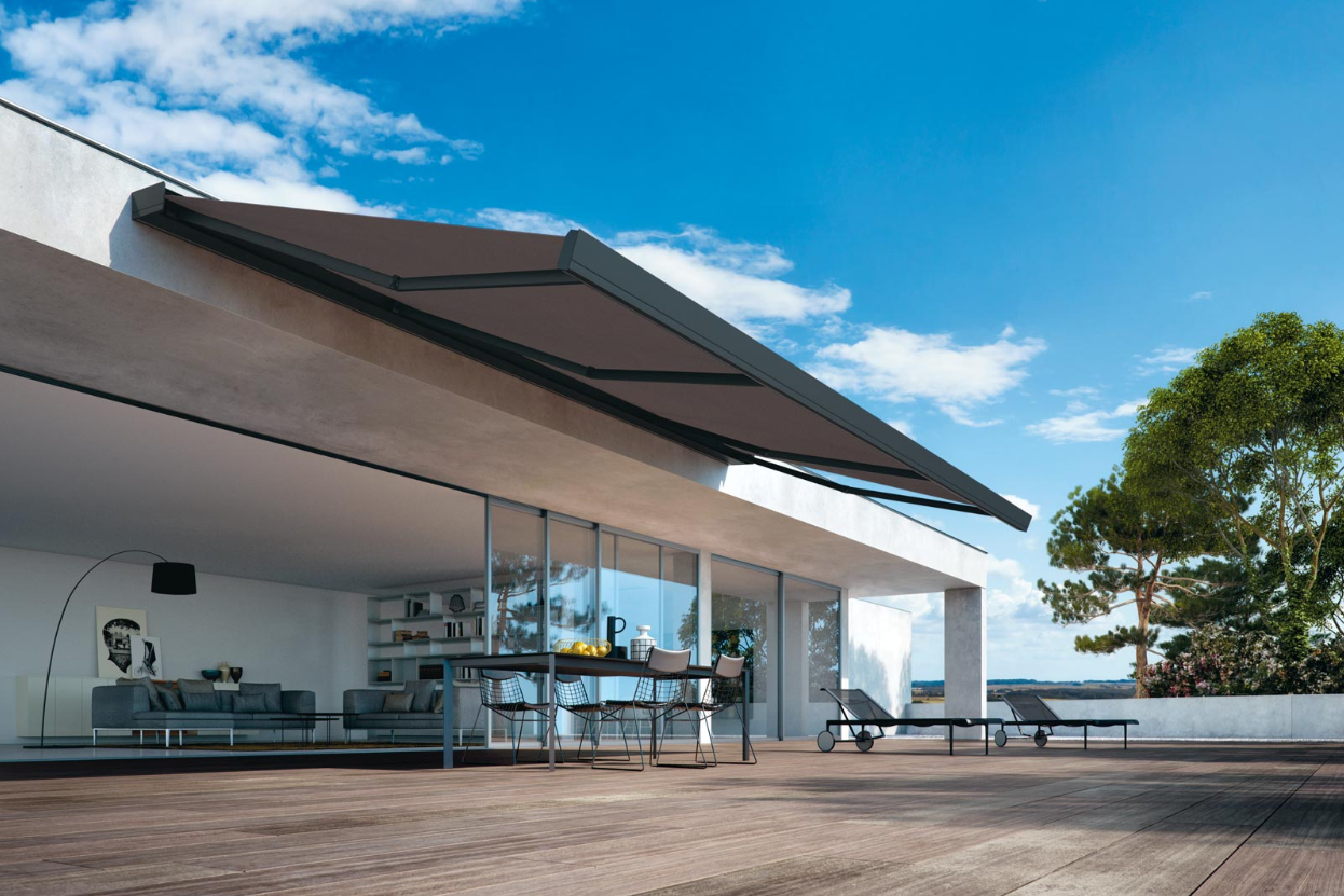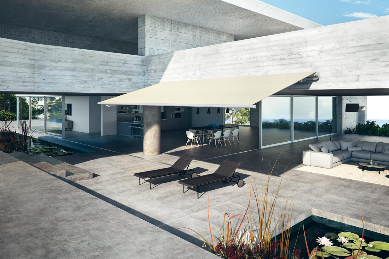 Le tende da sole a bracci estensibili sono ottime per la copertura dal sole e vantano di una particolare resistenza al vento forte grazie al sistema FlexControl.